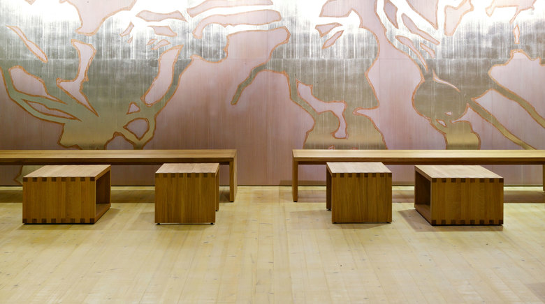 The commission included unique furnishing designs specifically for this interior. The double chairs for the church were designed to create the impression of long church pews. With their light colour, the aspen furnishings stand out well against the spruce surfaces. The texture of the split wood surfaces of the altar and the font highlights their important role. The altar triptych gives the chancel a serene atmosphere Artist Antti Tanttu’s work “Elämän Puu” (The Tree of Life) evokes impressions of an old mirror as light falls on its surface, changing the hues of the silver leaf surface. In the same way the church space, too, attempts to describe something that is beyond words.