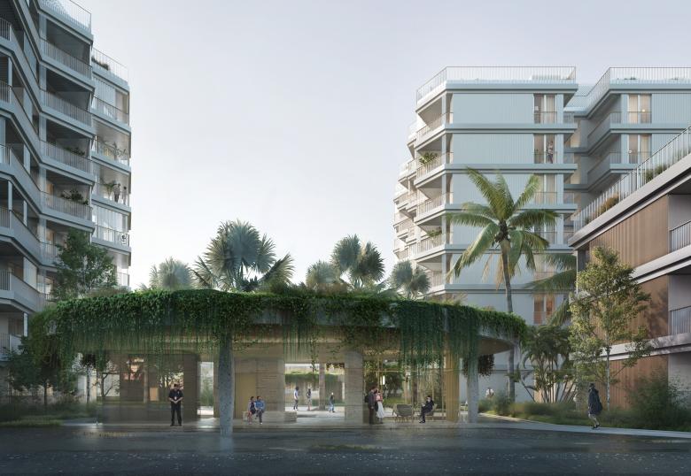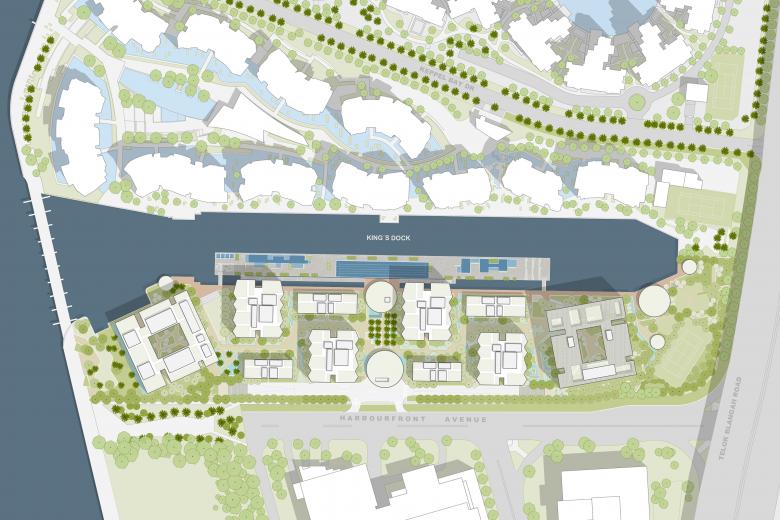 The residential development “The Reef” at Singapore’s Keppel Bay proposes an urban village with 429 apartments in 10 buildings of different types. In close proximity to downtown and within walking distance to Harbour Front and Vivo City, the development benefits from the remarkable position at King’s Dock, offering exceptional views, an abundance of green spaces, and unique floating swimming pools. The ancient shipping dry-dock is part of Singapore’s listed heritage, forming a transition from Keppel Bay’s residential developments to the Harbour Front area.
