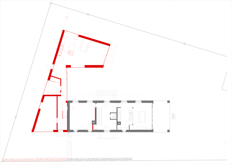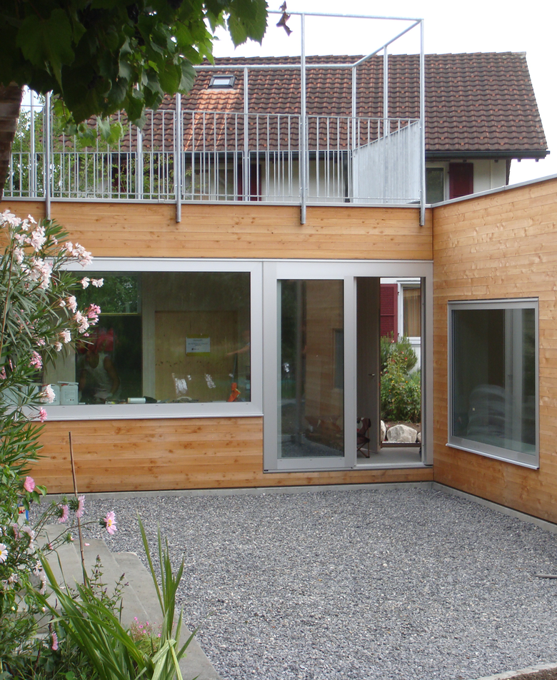Anstelle des Schopfes bildet der neue Hausteil einen