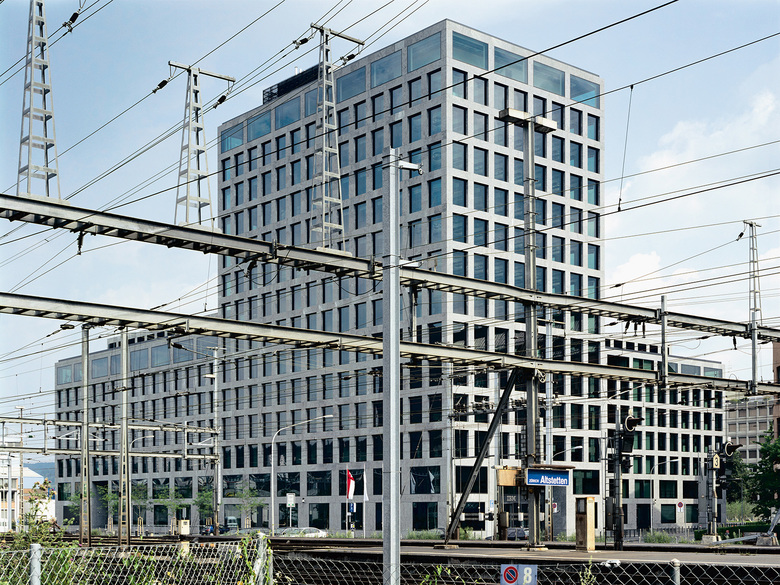 Die IBM als eines der ersten und führenden globalen Unternehmen der Zukunftstechnologien steht für Kreativität und Solidität zugleich. Die Gestaltung des Hauptquartiers für die IBM in Zürich Altstetten soll Innovation und Risikobereitschaft und zugleich Tradition und Verantwortungsbewusstsein architektonisch repräsentieren. Im Sinne eines „Dualismus" von Solidität und Transparenz wird die Fassade aus Naturstein von großformatigen, rahmenlosen Fensterflächen durchbrochen. Ihre Gestaltung im Detail ist radikal vereinfacht, so dass das Gebäude mal als Haus, mal eher als Skulptur erscheint. Ein interner, zentraler Platz, die „Agora", führt die Anlage zusammen und dient als Ort des Austausches und der Begegnung.