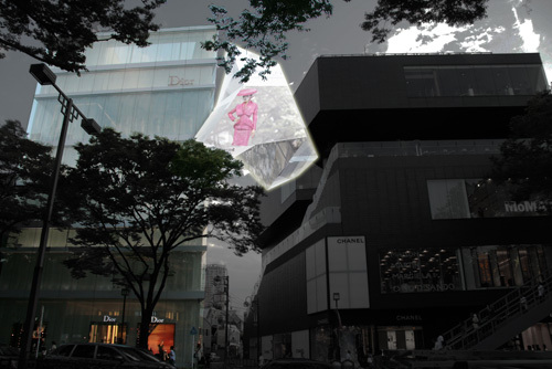 Fashion, quite often is about the tension between showing and hiding. Tokyo is a city full of encounters and events. We are interested in making fashion physical in such a city – the building itself is switchable – transmitting live events from all over the city. The tower itself switches between showing and hiding, like the constant changes of fashion; or metaphorically, between mirrors that reflects reality in its glittering surface and a mirage of reflected desire in someone else’s space.