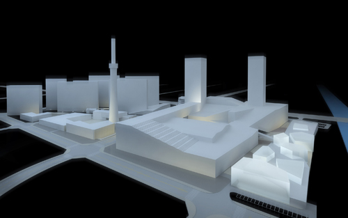 The proposal transfers the former power plant to a mega-complex of 300,000 sqm. It aims at conclude all aspects of the life for the surrounding neighborhood, from restaurants, cinema, supermarket, to high-end boutique stores.