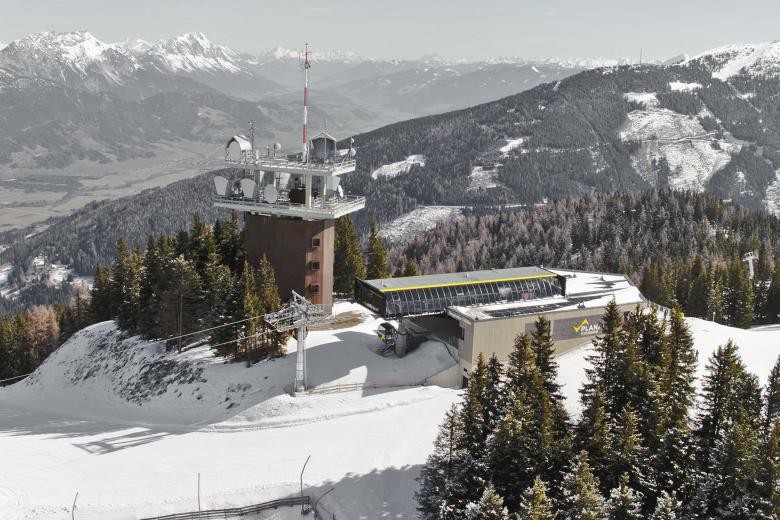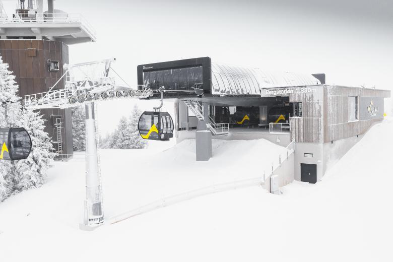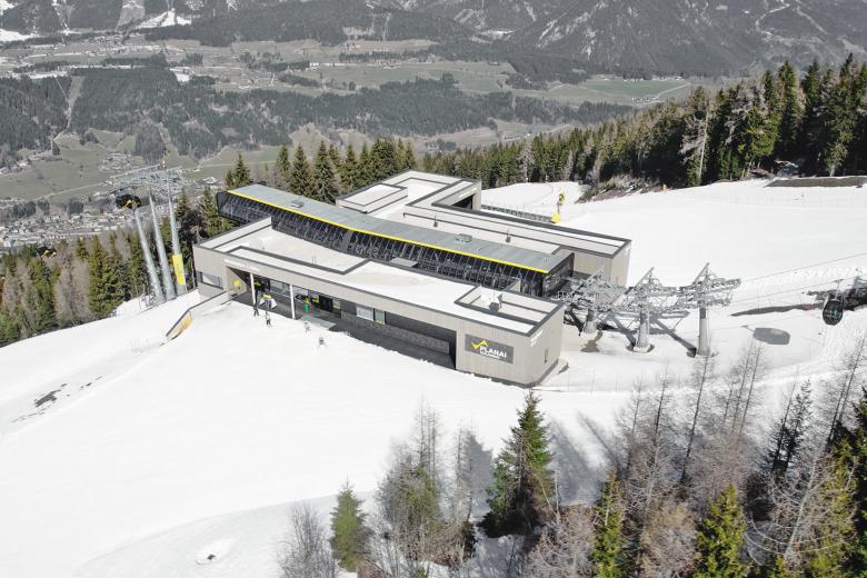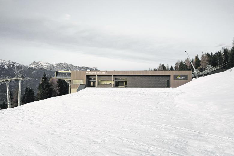 Eine große Herausforderung stellte der Einbau der neuen 10er-Gondelbahn in das Bestandsgebäude der Talstation dar. Die neue Mittelstation, mit einer Größe von 60x60 m fügt sich nun wie selbstverständlich in die Umgebung ein und wurde, wie auch die Bergstation, mit einer vorvergrauten Holzschalung verkleidet. Dadurch wurde die Materialität der umliegenden Bergwelt aufgenommen und verleiht der neuen Mittel- und Bergstation eine ausgewogene Gesamtwirkung.
