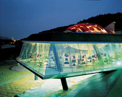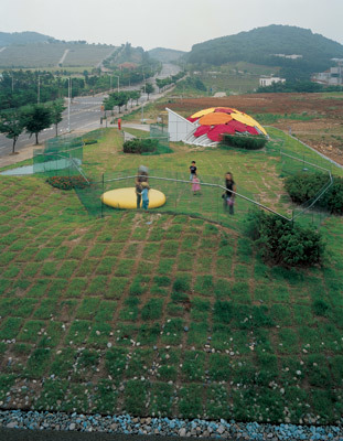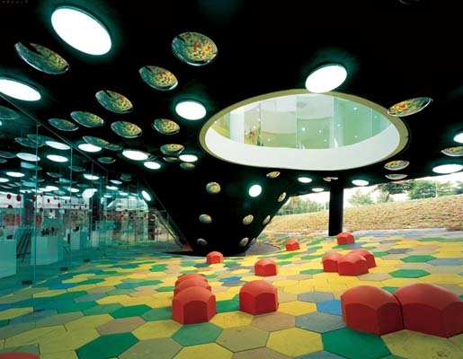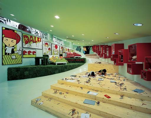 Dalki is a cartoon character invented to market clothes and other products for children and teenagers. She is an imaginary girl who lives in a garden with her friends. Dalki Theme park is a building where these imaginary characters interact with human visitors in a real, physical setting. The space accommodates shopping, playing, eating and lounging as well as exhibits dealing with scale, nature and the Dalki characters.