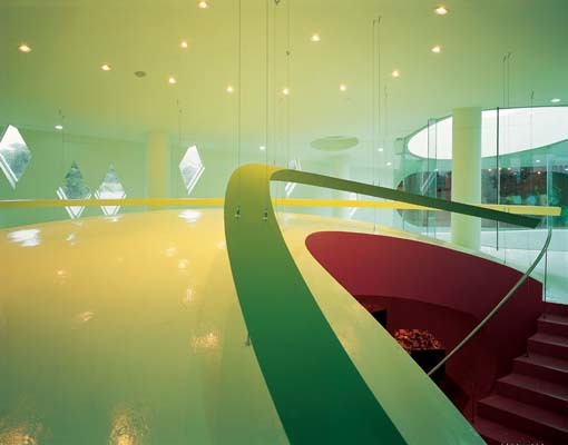 Merging allows smooth transitions between zones, from interior to exterior, building to landscape and between programs. The vertical overlap allows another type of connection – the short circuit. Like hypertext in html, users can jump in a non-linear way from one space/program to another, bypassing the sequence. The combination of the smooth flowing spaces, mixed program distribution and short circuits allows users to choreograph their experience by choosing trajectories or spatial sequences.