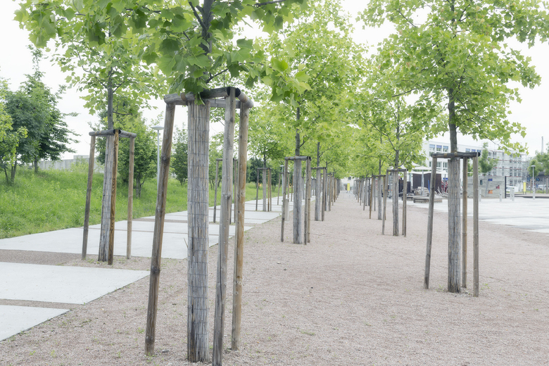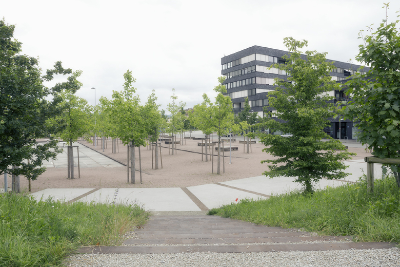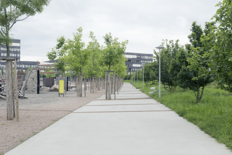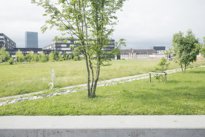 Auf dem ehemaligen Güterbahnhof der Deutschen Bahn in Basel ist ein nachhaltiges Konzept umgesetzt worden. Nachdem das Gelände Jahre brach lag, sich diverse Nutzungen ansiedelten und wieder verschwanden, sollte endlich eine langfristige Lösung gefunden werden. Ziel war es, einen Freiraum zu schaffen, der nicht nur gestalterischen Anspruch hat, sondern vorrangig Lebensqualität ins Quartier bringt und vielfältige Funktionen bietet. Ruderale Pflanzengesellschaften, die sich auf dem Gelände in der Zwischenzeit angesiedelt hatten, sollten möglichst bestehen bleiben. Nach einem Gesamtkonzept aus der Feder der Raymond Vogel Landschaftsarchitekten in Zürich ist der Erlenmattpark als eine von drei Teilprojekten entstanden. Der zwischen mehreren Baufeldern eingespannte Park bildet das Herzstück des neuen Stadtquartiers Erlenmatt. Gleichzeitig ist er das zentrale Bindeglied eines grünen Korridors, der die Erlenmatt in Nord-Süd-Richtung durchzieht. Schönholzer + Stauffer Landschaftsarchitekten leiteten beim Bau des ersten Teilprojekts ein Team aus Landschaftsarchitekten, Bauingenieuren, Biologen und weiteren Fachplanern.