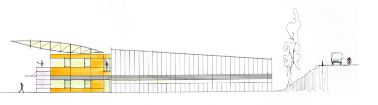 Die Entwurfsidee ist, einen reizvollen Kontrast zwischen charakteristischem Kopfbau und der kühlen Industriearchitektur der Werk-/Lagerhalle zu.