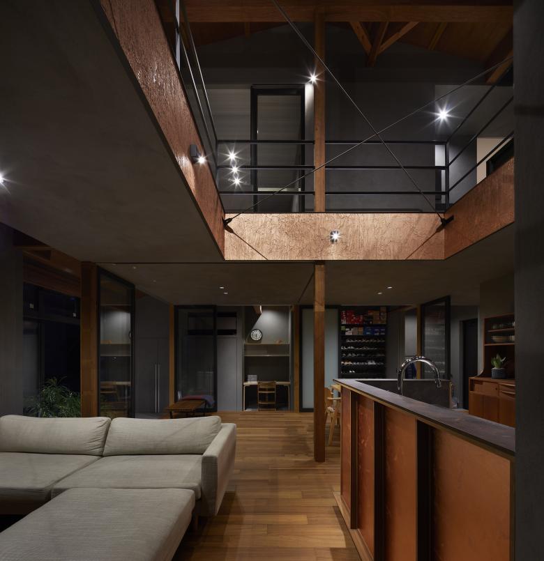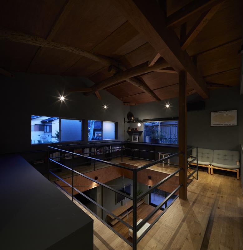 After sorting out the requirements, it was necessary to choose a method that would improve the living environment with a minimum of manipulation. Reading the current wind stagnation from the existing building, we were able to weave the flow of light and wind into the upper and lower floors by making large floor openings across each other, rather than either of the two southeast-facing rooms on the existing second floor, and by making that the center of gravity of the thermal environment. The position and dimensions of the openings were determined in consideration of creating a corridor so that the windows on the second floor can be opened and closed, and so that light can reach the living room on the north side of the first floor. The space around the opening was used to create a corridor that doubles as a library and a second living room for the family, as well as a vertical connection with the living room on the first floor.