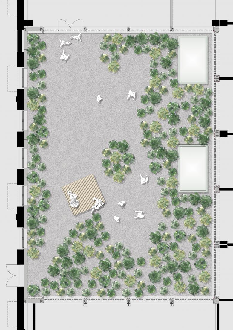 Neben der verbesserten Belichtung soll eine üppige, saftig grün leuchtende Vegetation einen positiven Einfluss auf die umgebenden Innenräume ausüben und zugleich zugänglich sein.