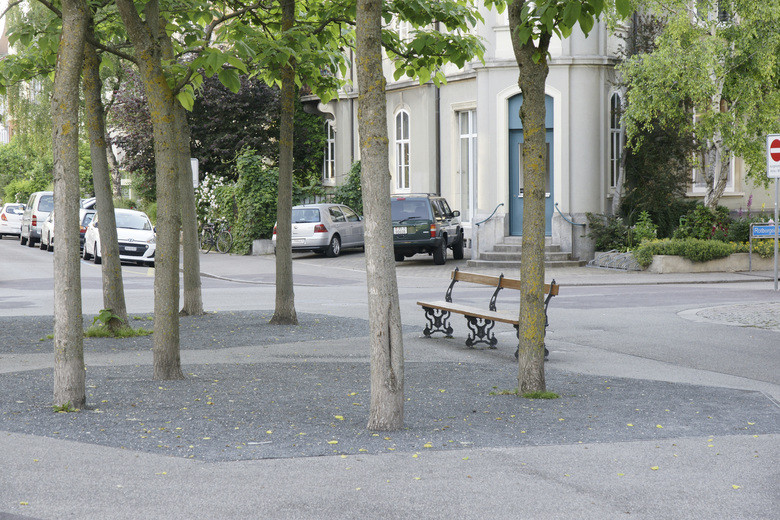 Ein Quartiersplatz, der fast vollständig vom motorisierten Verkehr als querende Durchgangsstrasse und Parkplatz vereinnahmt wurde, wird ein städtischer Platz für die Anwohner.