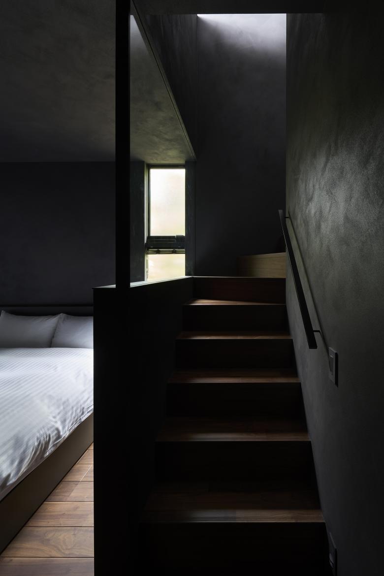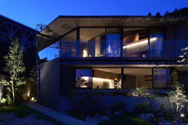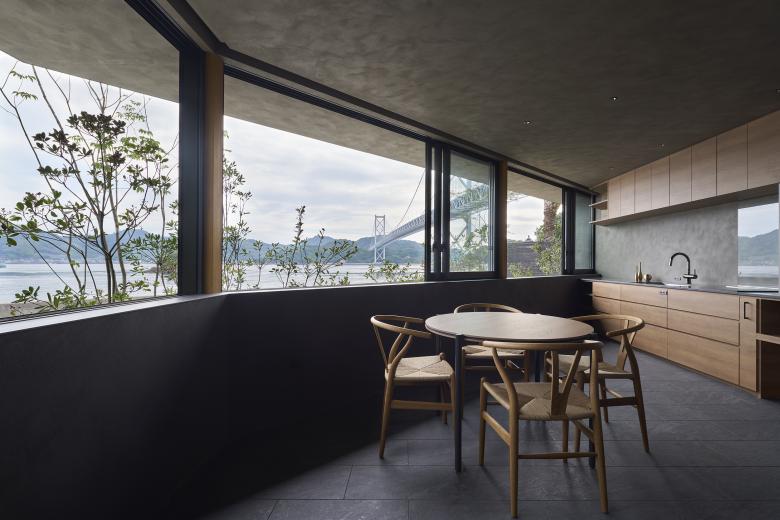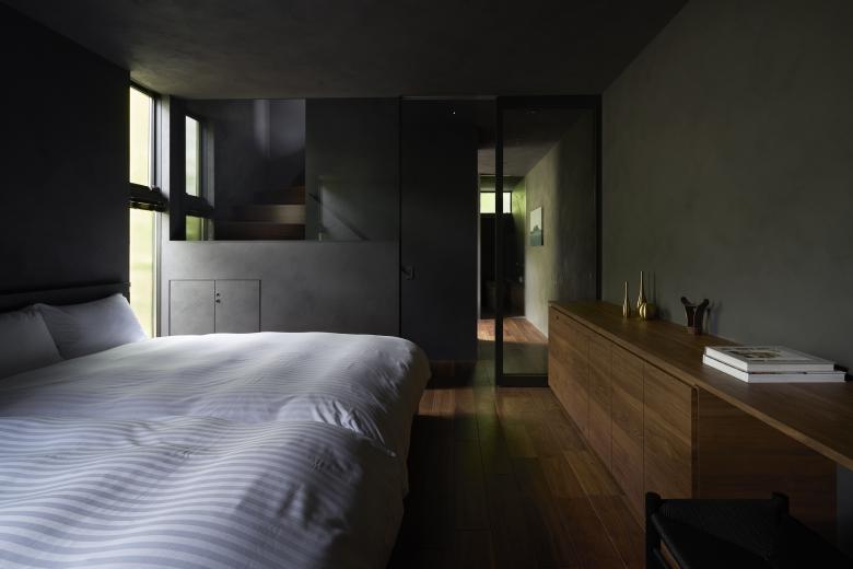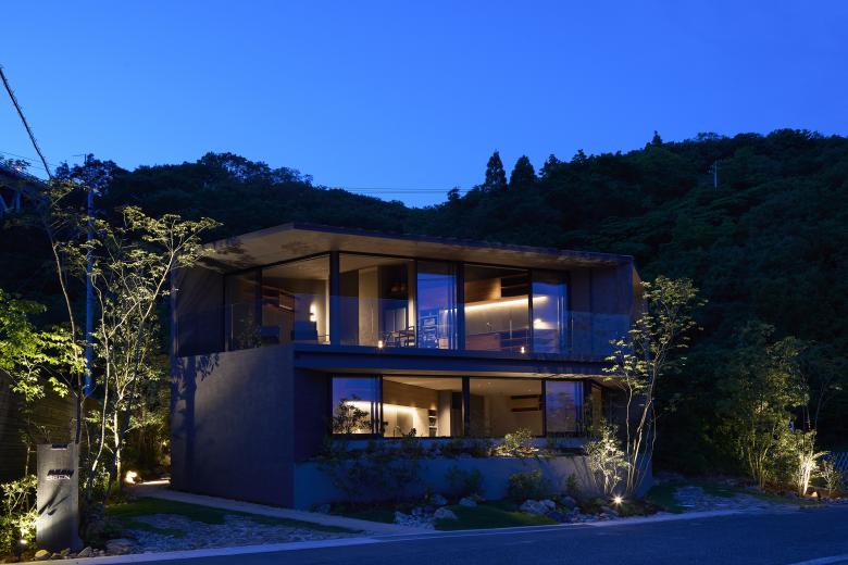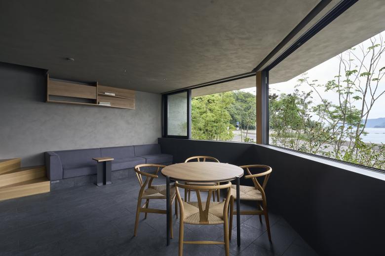 The architecture is designed to maximize the richness of the environment by opening up to the panorama, and by arranging the two guest rooms not in parallel but intertwined three-dimensionally, the building offers multi-directional views that straddle the upper and lower floors.