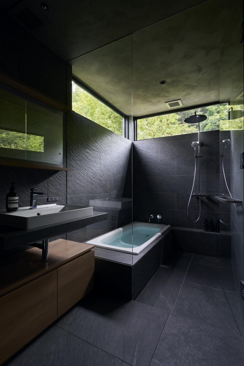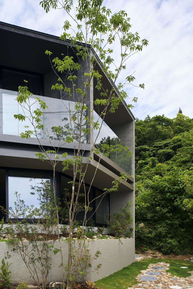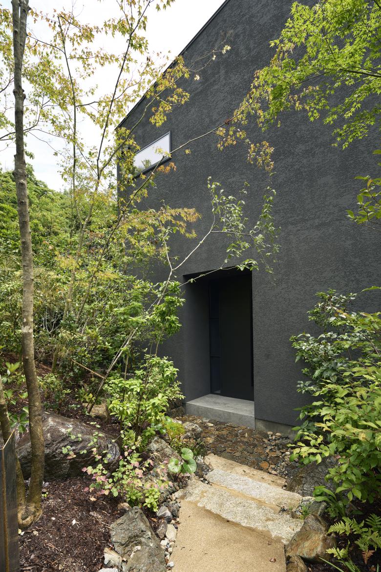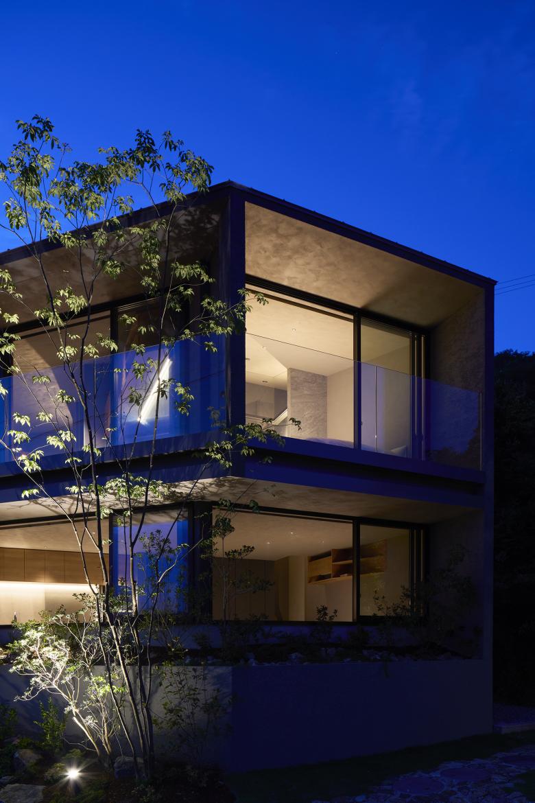 The architecture is designed to maximize the richness of the environment by opening up to the panorama, and by arranging the two guest rooms not in parallel but intertwined three-dimensionally, the building offers multi-directional views that straddle the upper and lower floors.