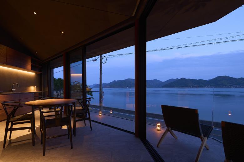 SEEN is an accommodation facility located on Mukojima, where the gentle nature changes with the seasons. The ocean is connected through the windows, and one can enjoy a quiet time in this place with a panoramic view of the landscape.