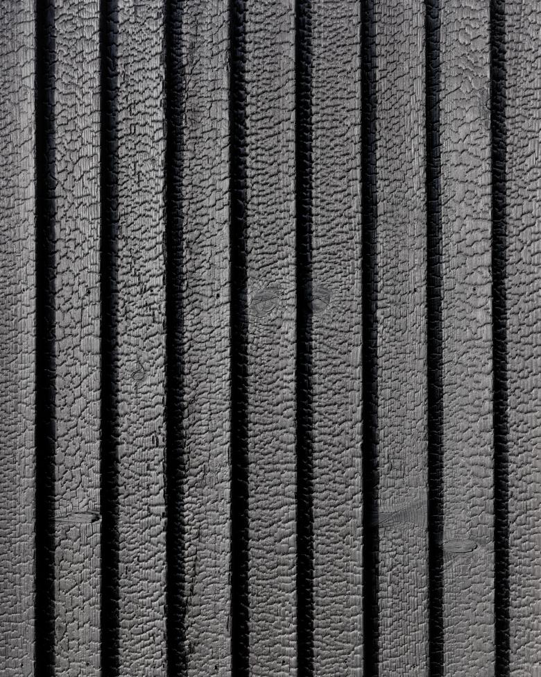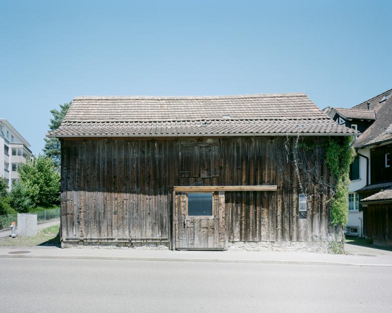 In ihrem Grundvolumen und der Dachform schaut die Scheune aus wie früher. Eine neue Stülpfassade mit Holz von Weisstannen wurde mit der Yakusuzgi-Methode verkohlt. Die Hölzer werden mehrere Generationen lang halten. Der Wiedererkennungswert bleibt für das geschützte Ensemble mit den Häusern hinten im Hof bestehen. Die Erkenntnis, dass die Scheune nun ein Wohnhaus ist, zeigt sich nur wenn Fensteröffnungen ersichtlich sind. Auf zwei Fassadenseiten hin sind die Fenster hinter manuell einstellbaren schwarzen Holzlamellen und je nach Betrachtungswinkel der Fassade nicht mehr ersichtlich.