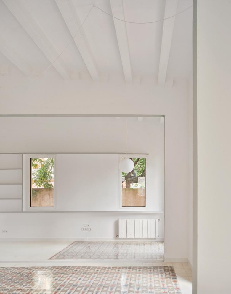 La intervención prioriza la apertura de la vivienda hacia el jardín y el parque adyacente, creando una relación continua entre los espacios interiores y exteriores. Se han recuperado y preservado elementos históricos clave, como la estructura original del techo y los suelos de baldosa hidráulica, reforzando la identidad de la casa. Al mismo tiempo, se han realizado importantes refuerzos estructurales que permiten reducir los tabiques interiores y generar un espacio más luminoso y flexible. Desde una perspectiva de sostenibilidad, toda la vivienda ha sido aislada térmicamente, mejorando la eficiencia energética y el confort, garantizando que se preserve el espíritu original del edificio mientras se satisfacen los requerimientos actuales de habitabilidad y sostenibilidad