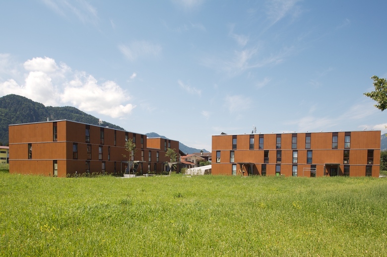 Am östlichen Dorfeingang von Kundl konzipierte DIN A4 Architektur für einen Wettbewerb die Wohnanlage am Daxerfeld mit insgesamt 98 Wohneinheiten. Durch die Schaffung einer durchlässigen Struktur gliedert sich der Entwurf in die Umgebung der Dorfrandbebauung ein, definierte Außenräume vermitteln trotz Lage des Grundstückes am Ortsrand Geborgenheit.