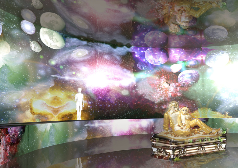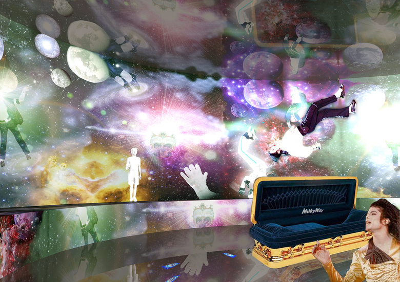 „Wenn du zur Welt kommst und geliebt wirst, und wenn du geliebt wirst, wenn du sie wieder verlässt, dann ist alles in Ordnung. Mit allem, was dir dazwischen passiert, kannst du dann fertig werden.“ Michael Jackson. Beim Wettbewerb „Tapetenwechsel“ handelt es sich um einen Ideenwettbewerb zwischen Tradition und Innovation für einen prototypischen Raum, der 2009 vom Verband der deutschen Tapetenindustrie in Kooperation mit der AIT ausgeschrieben wurde. Der Beitrag "Milky Way" von reginadahmeningenhoven ist eine Hommage an Michael Jackson. Mittels visueller Bilder sollte die Illusion seines genialen Moonwalks erzeugt werden und wie seine Lieder einen kosmischen Raum erzeugen, der swingt und sich rhythmisch bewegt. Der Tod von Michael Jackson löste einen Gefühlssturm aus, wie nur Legenden wie Lady Diana, James Dean oder Elvis Presley sie auslösen können. Er revolutionierte nicht nur den Tanz und die Musik, sondern auch die Videokunst und Bühnenshow und gilt als die Ikone des Pops schlechthin. Jackson war vielleicht der letzte Entertainer, dem mehrere Generationen nachweinen. Seine Lieder swingen, sie bewegen, sie schmiegen sich an den Herzrhythmus und imitieren dadurch Leben. Es gibt kein Thriller - Stück, das nicht in den Körper geht. Michael Jackson verkörpert eine gesellschaftliche Utopie und verwandelt sich in eine mediale Erlöserfigur. Als Kind des Startrek-Zeitalters liebt er die Symbolkraft, wie z.B. der des Astronautenkostüms - getreu dem berühmten Fred Astaire – Filmmottos. „the sky’s the limit“. Michael Jackson ist der Gottmensch des Medienzeitalters - ein Weltenretter, der über seinen Tod hinaus lebt. Bis bald, Michael! Bestimmt tanzt du den Moonwalker in der Milky Way und lachst!
