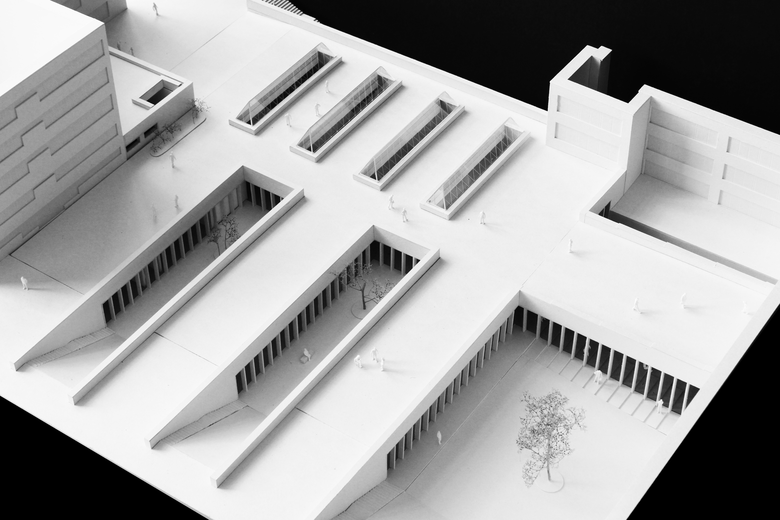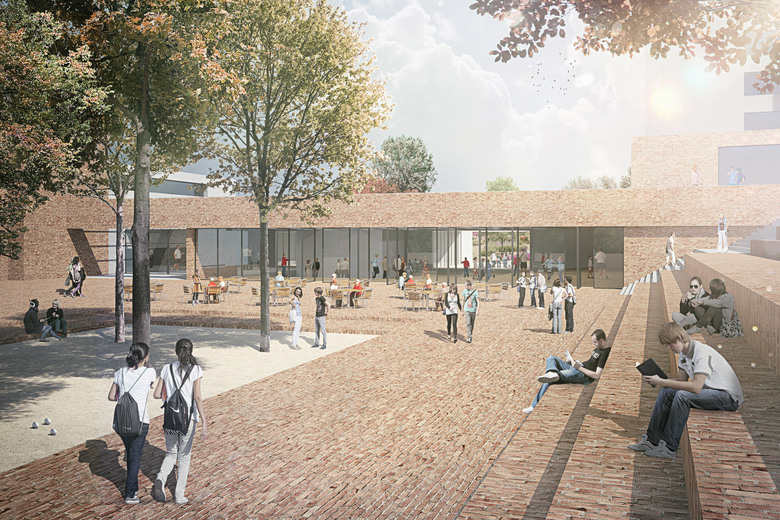 In der deutschen Kleinstadt Rösrath bei Köln-Bonn entsteht ein neues Schulzentrum mit Realschule und Gymnasium. Der bauhistorisch interessante Bestand aus den 60er - bis 80er Jahren wird behutsam adaptiert und formal vom Neubau aufgegriffen. Beide Schultypen werden zwar eigenständig verwaltet, sind aber nun funktional und räumlich miteinander verzahnt. Das bisher introvertierte Gebäude wird großzügig an die Haupterschließungwege angebunden. Der Raum vor dem Gynmasium, der Realschule und dem Ganztagsbereich wird zu differenzierten Plätzen erweitert, die die Topographie mit ihrer Hanglange abbilden. Es entstehen Bereiche für Begegnungen, Spielen und "Chillen".