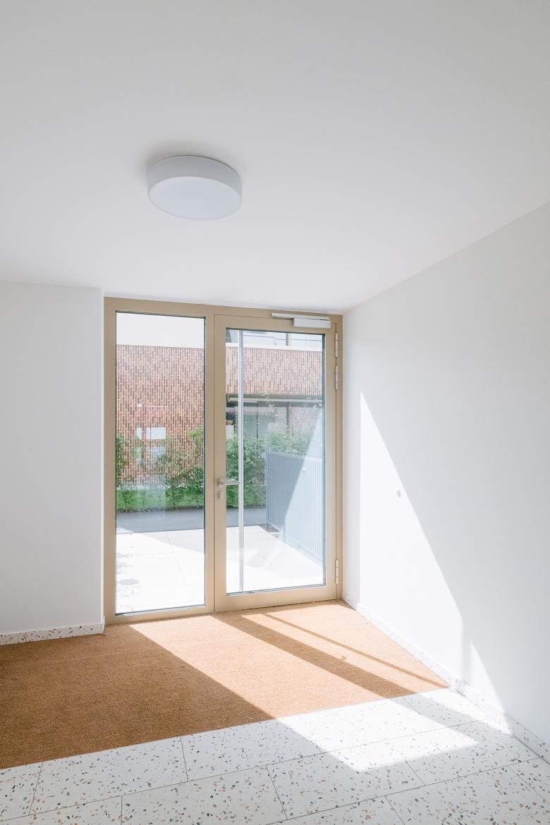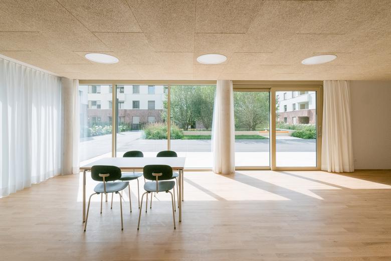 „Die Gemeinschaftsküche und Mehrzweckraum der SeniorInnen-WG sind über den Innenhof erschlossen, um den Dialog und die Gemeinschaft mit den anderen BewohnerInnen zu fördern.“