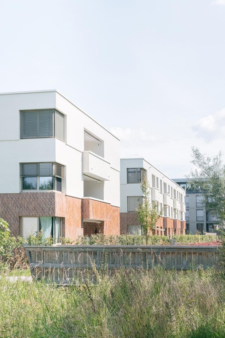 „Die Grundrisse bieten vielfältige Möglichkeiten: Es wird auf Gänge verzichtet, die Räume gehen fließend ineinander über und sind trotzdem Rückzugsorte. Es gibt keine Zimmer in reiner Nordlage. Terrassen, Garten, kleine Loggien verzahnen Außen und Innen.“