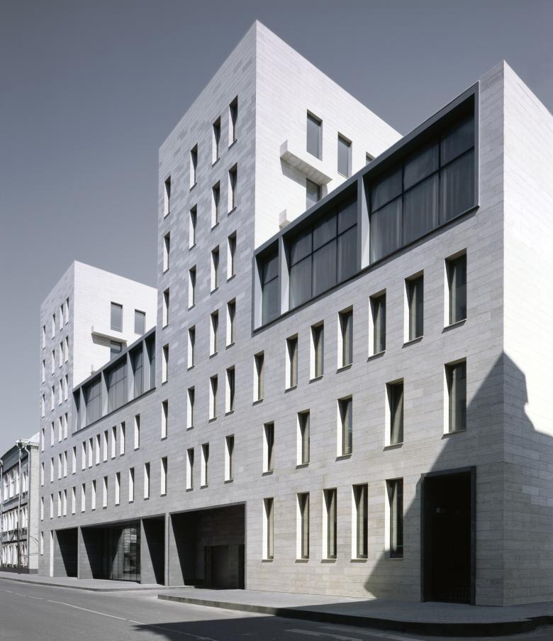 The building continues to form a new front line of the embankment, the process which had been started by building the new office of Moscow International Bank (MIB) quite a few years ago. From the urbanistic point of view the intention was to enlarge the scale of structures here in order to make the quay more accomplished and city-like character. On the other hand there always is the necessity to preserve historic dominance of Kremlin towers, Christ-the-Savior temple and other local historic marks, so it led to disconnectedness of volumes in the front façade of the new complex.