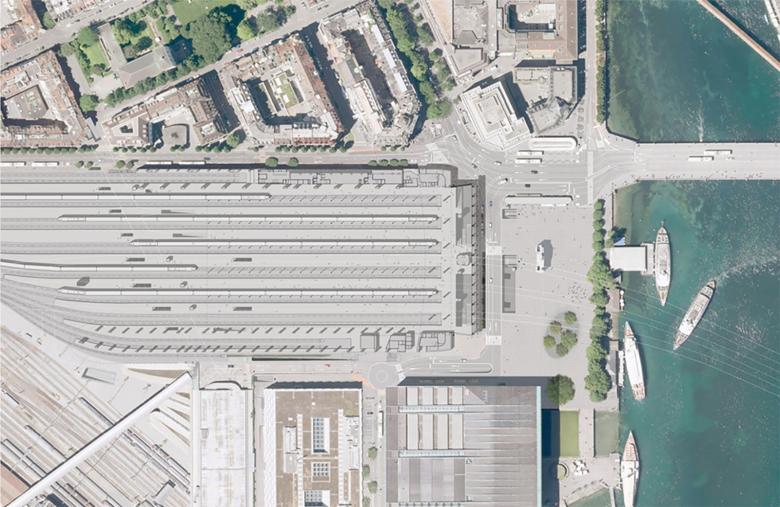 Bestandsbauten und der neue Tiefbahnhof verschmelzen zu einer räumlichen Einheit ohne Trennung. Die hochwertige Architektur der Bestandsbauten verschiedener Etappen bleibt dabei erhalten. Die Neubauten respektieren diese, ohne ihre eigene Identität zu verlieren. Mit der geplanten Dislozierung und Neuorganisation vieler Bushalteplätze wird der Bahnhofplatz „entrümpelt“. Der Brandlüftungskamin wird im südlichen Bereich des Perrons 10/11 platziert, sodass eine massgebliche Aufwertung des Bahnhofplatzes möglich wird. Neu prägen der freigespielte historische Torbogen sowie die grosszügige Lichtöffnung mit der Treppenanlage die Shopping- und Verteilebene den Platz.