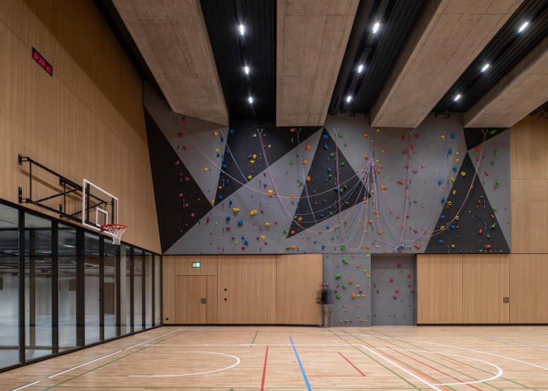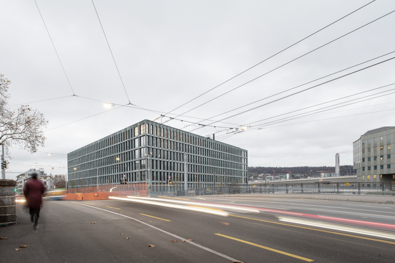 Mit dem Bau des PJZ auf dem Areal Güterbahnhof in Zürich entsteht ein Kompetenzzentrum für die Bekämpfung der Kriminalität. Das PJZ erlaubt die Zusammenführung der heute auf über 30 Standorte verteilten Kantonspolizei mit den Strafverfolgungsbehörden und dem Polizei- und Justizgefängnis. Der geschlossene, mehrheitlich sechsgeschossige Baukörper mit seinen begrünten Innenhöfen nimmt Bezug auf die vorhandene städtebauliche Typologie des Kreis 4. Die Baukörperüberhöhung am neuen Stadtplatz erzeugt sowohl eine repräsentative Eingangssituation, sowie für den Gesamtkomplex eine Adresse mit sehr hohem Identifikationspotential. In die Grossform implantiert wird ein komplexes Raumprogramm mit Verwaltung, Polizeischule, Gefängnis, Spezialnutzungen wie Schiessanlagen, Forensik oder Einsatzzentrale und diversen Infrastrukturen wie Restaurant, Sporthalle und Vorlesungs- und Konferenzräumen. Umschlossen wir das Gebäude von einer markanten, dreidimensionalen Natursteinfassade. Das Projekt unterliegt sehr hohen Sicherheitsanforderungen und muss dabei hochkomplexe innerbetriebliche Abläufe zwischen Kantonspolizei, Staatsanwaltschaft und Vollzug sicherstellen. Das Polizei- und Justizgefängnis ist dabei ein betrieblich eigenständiger Gebäudeteil und trotzdem vollständig in das Gebäudevolumen integriert. Die rund 280 Gefängnisplätze dienen für vorläufige Festnahmen sowie die Untersuchungshaft und sind auf verschiedene Zellenarten verteilt. Über eine sicherheitstechnisch, zwischengeschaltete Schicht von Einvernahmeräumen erfolgt die Zusammenarbeit mit der Justiz und der Kantonspolizei.