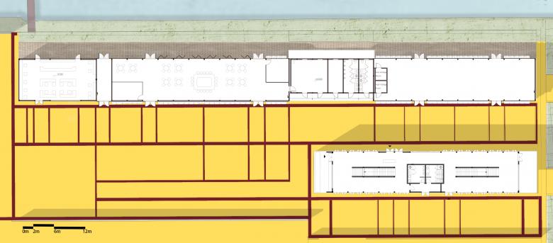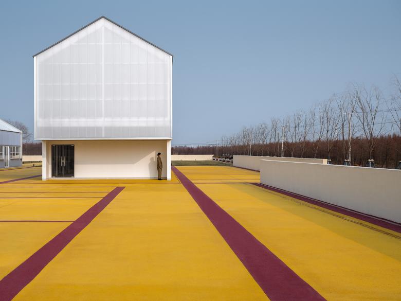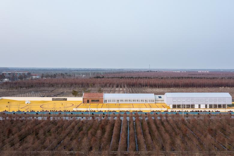 The original gatehouse is designed as a time capsule (movable installation) of the past, commemorating the original reed-built dwelling of Chongming Island: the Huan Dong She, and the barn brick house is partially preserved to commemorate the memories of the old barnyard during the polder period. The original farm equipment warehouse, renewed with a plain concrete façade, became an auxiliary room for the barnyard. The remaining part of the barn and the original two-story dormitory building were retained in their original architectural form, with the facade replaced with cream polycarbonate panels to become the Bright Milk House, a multifunctional space for research and development and display of the Bright Group's new agricultural products.