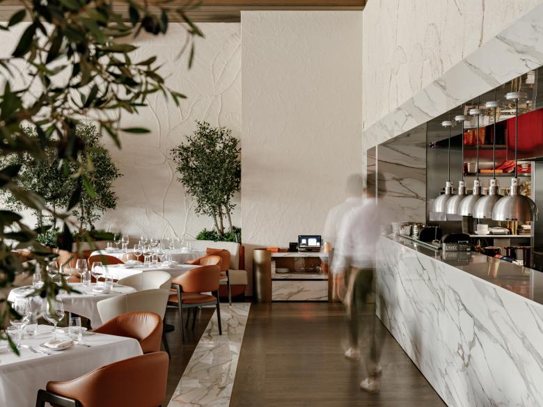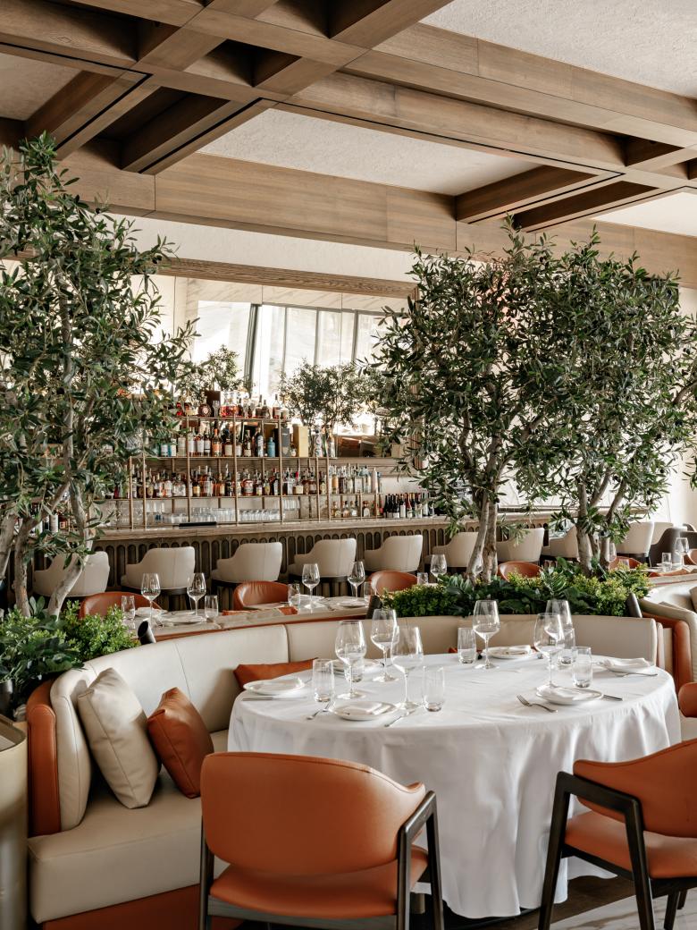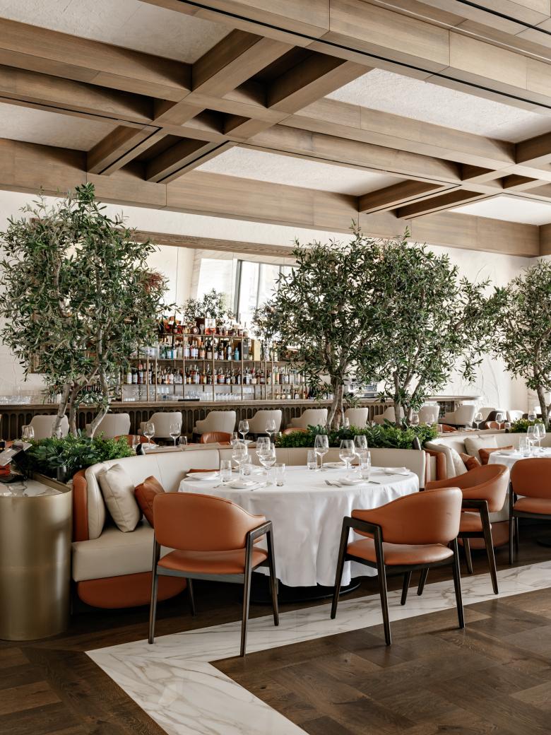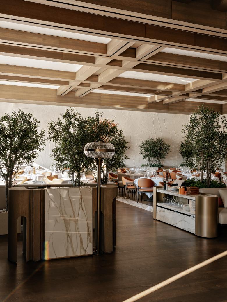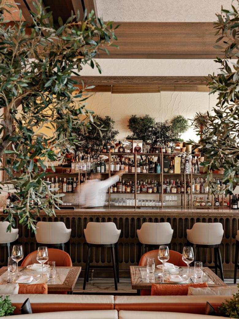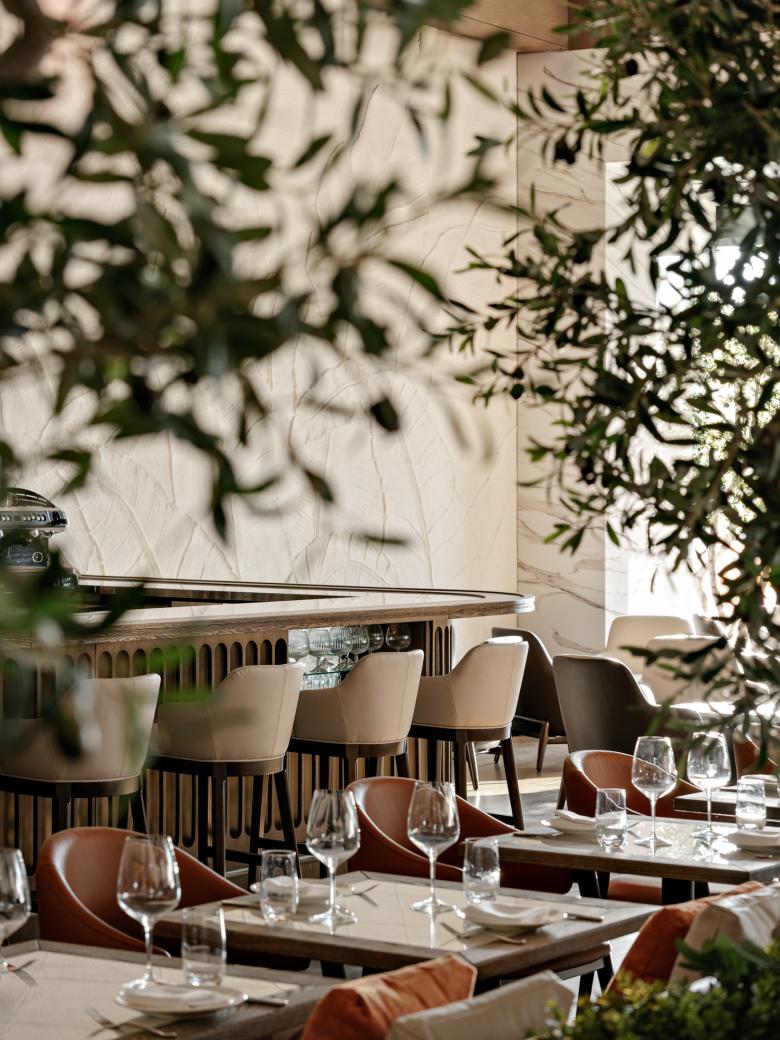 The overarching concept revolves around custom elements and an emphasis on scale and volume. The integration of classic elements with rustic aesthetics creates a harmonious visual tapestry, culminating in an elegant yet approachable dining environment. The evening bar area exudes sophistication, inviting guests to unwind and indulge in carefully curated libations.