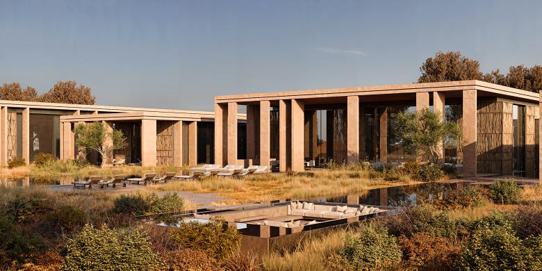 Serava Villa is a private residence located in one of the most secluded and exclusive areas of Abu Dhabi. The design draws inspiration from the surrounding desert landscape and nearby sea, interpreting their fluidity, textures, and tones through sculptural forms and a muted material palette. Natural stone, textured plaster, and warm wood tones reflect local identity while conveying timeless elegance.
