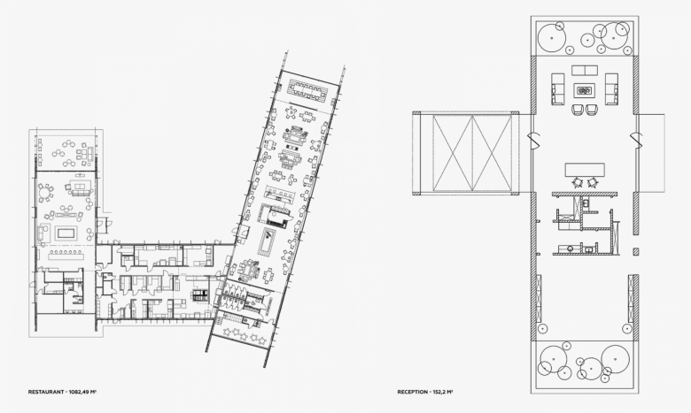 The team developed the exterior design of two buildings, a restaurant and a reception, on both sides of the pool, the main gathering places for holidaymakers, and integrated them into the overall landscape. The architects designed a lightweight, almost weightless structure that complemented the existing Zen, but did not create an extra urban load on the space.