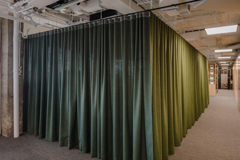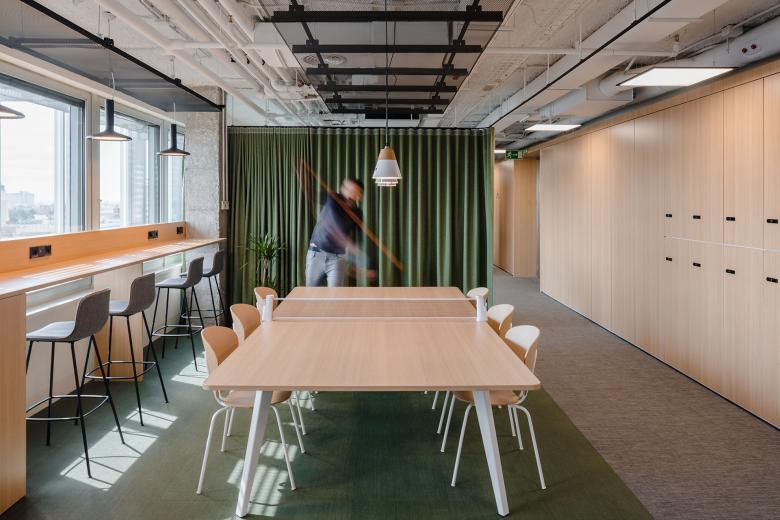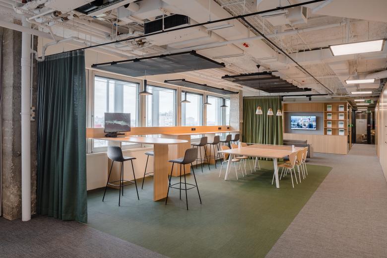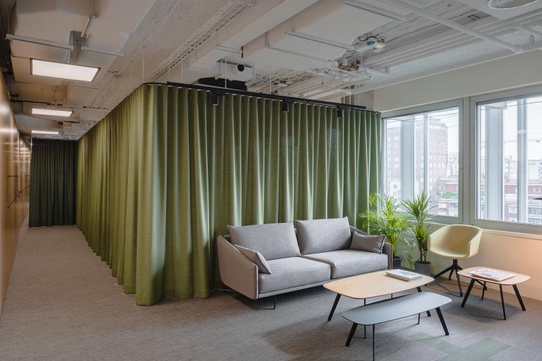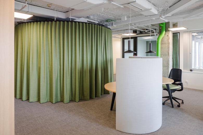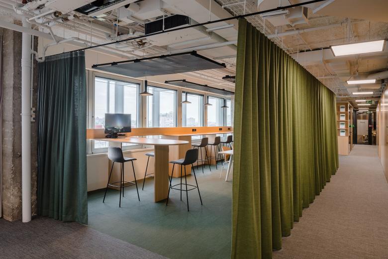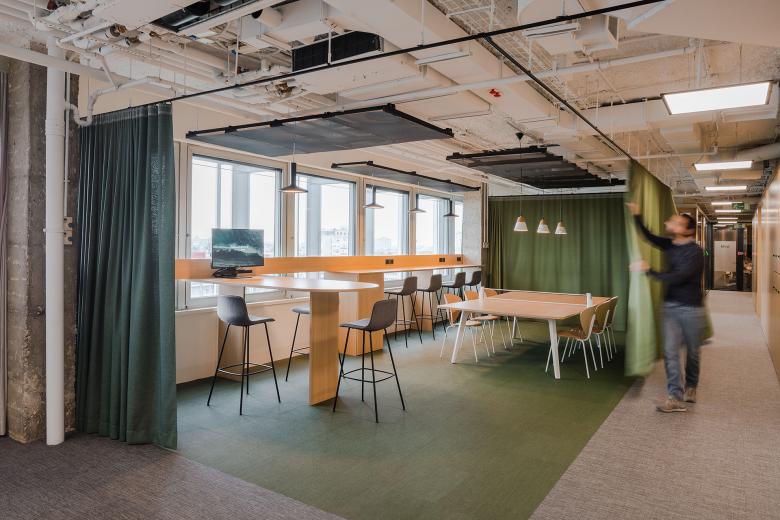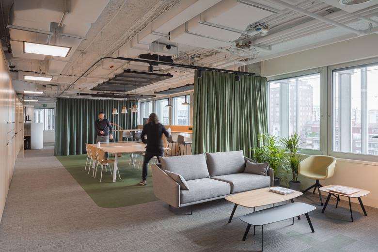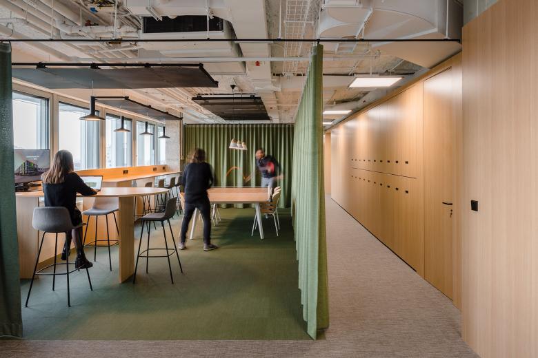 No hay puestos de trabajos fijos, no hay papel y la necesidad de conjugar el teletrabajo dan como resultado espacios multifunción que se configuran y usan según las diversas necesidades.
