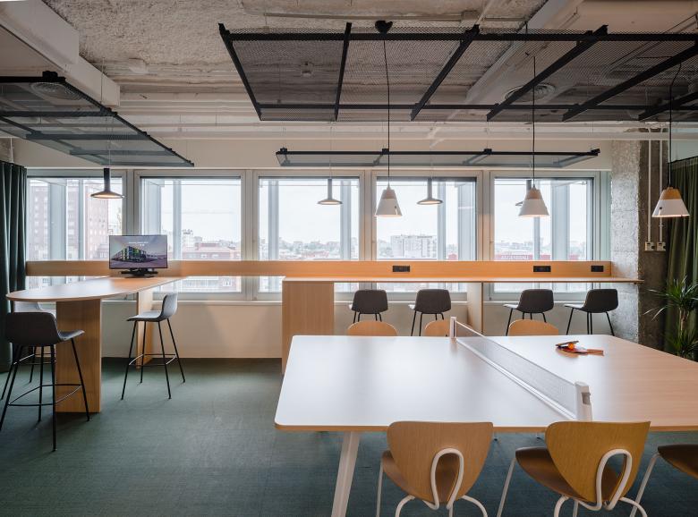 El espacio se divide en dos zonas de trabajo, una de uso exclusivamente privado y zona de trabajo (salas de reuniones) donde se reciben visitas. Estos dos espacios unidos por el Open Space, un gran espacio abierto, mutante y flexible donde se conjugan y se conciben todo tipo de actividades. Este espacio hace de recepción corporativa, de sala de ocio, de comedor, de salas de reuniones espontáneas y de colchón espacial de los dos grandes usos.