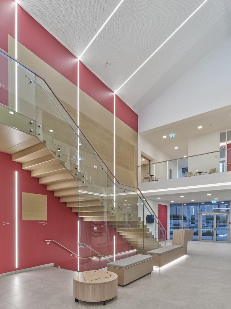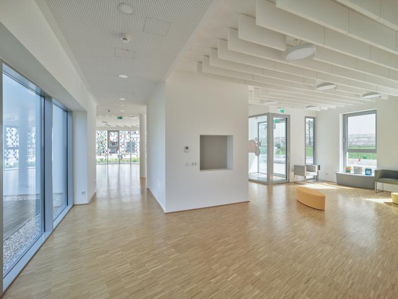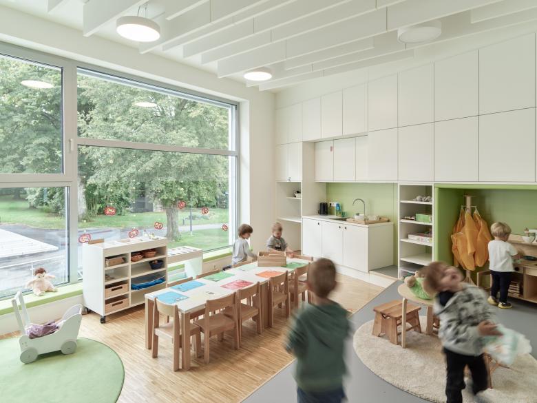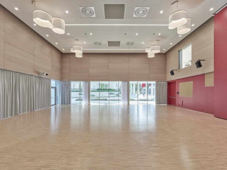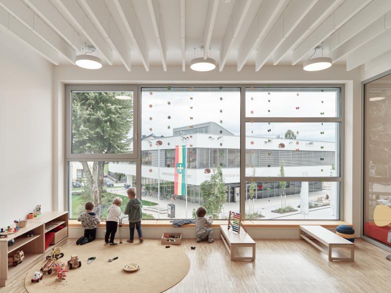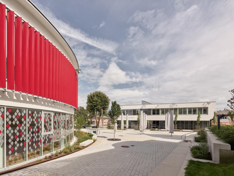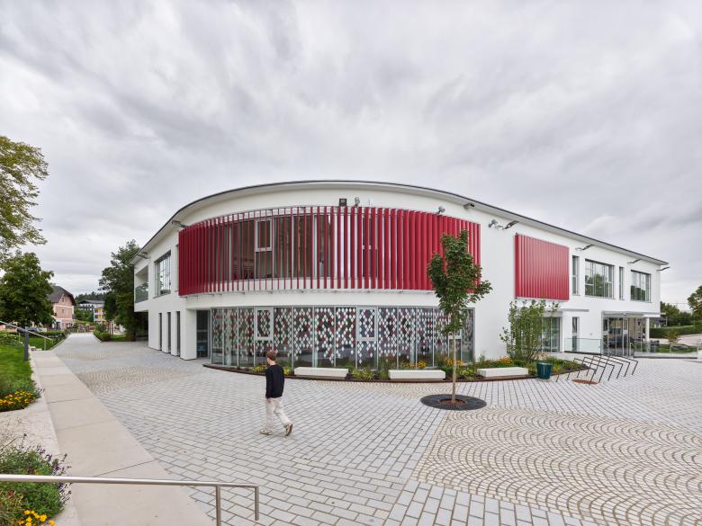Kommunalgebäude mit Kinderbetreuung, Bibliothek und Gastronomie