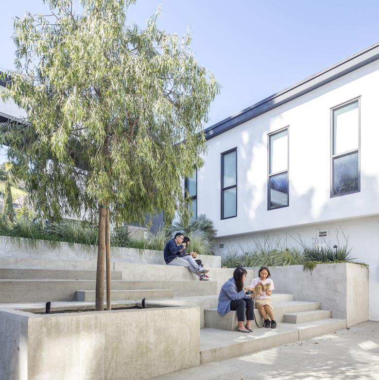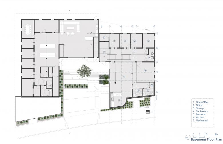 The comprehensive transformation of the former Haven of Rest Ministry headquarters in the Silver Lake Neighborhood of Los Angeles, after a myriad of lives as music and film production offices, tattoo parlor, law and therapy offices, and storage garage, centered on the creation of a contemporary creative office campus enveloping a landscaped courtyard and amphitheater.