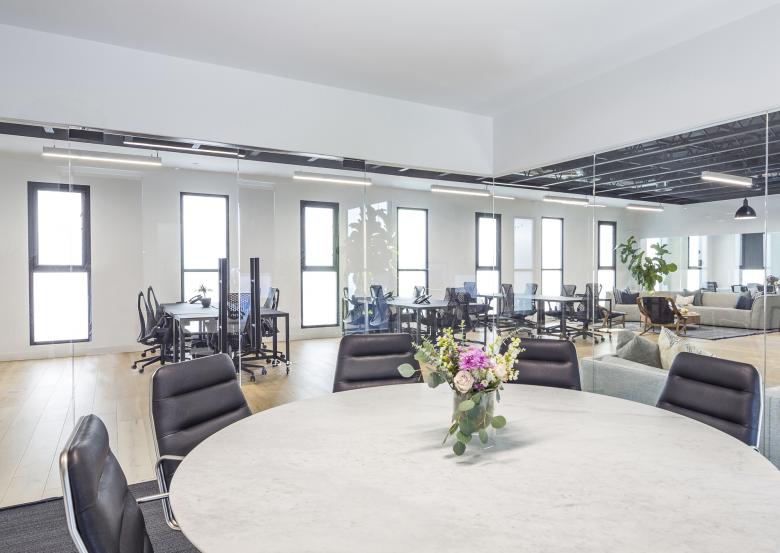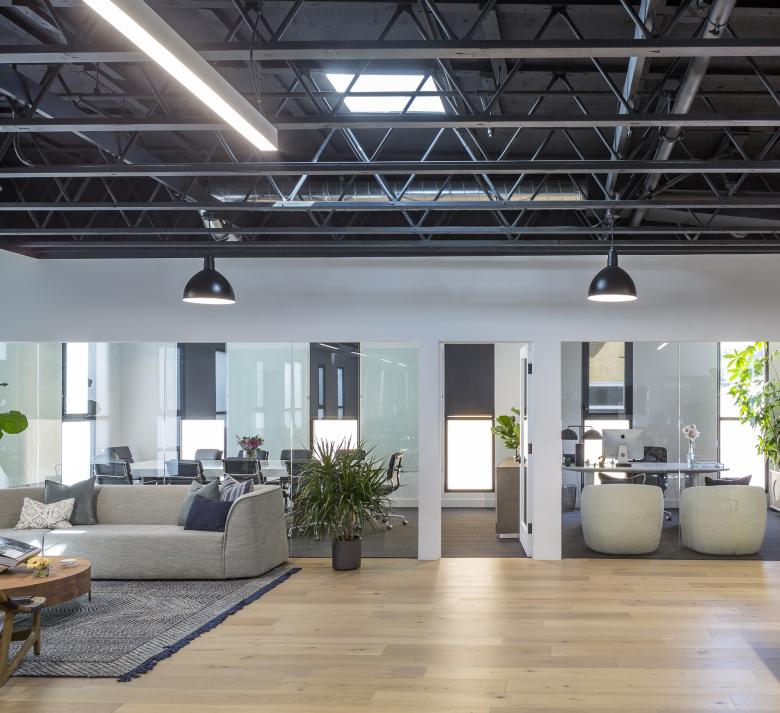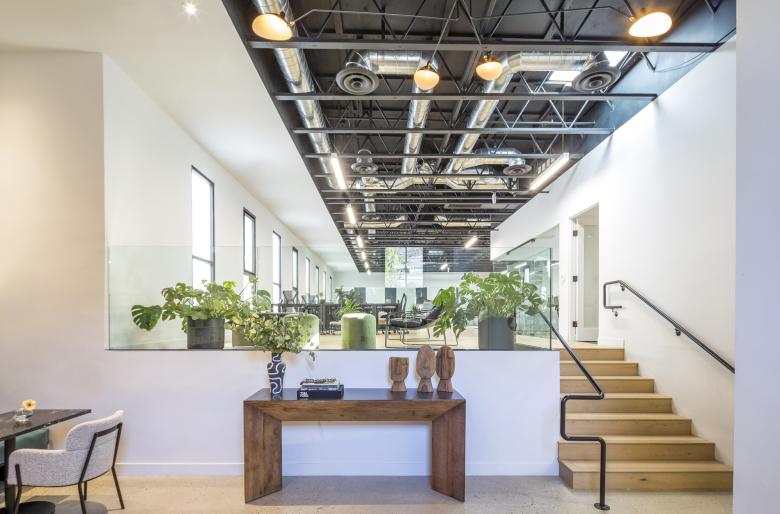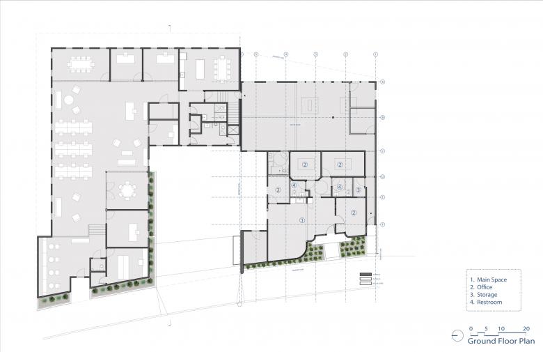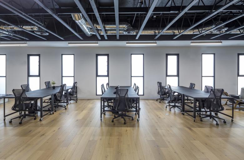Divided into five zones over two floors within a U-shaped footprint - equipped with the ability to conjoin or subdivide as required - the building consists of a primary office space, photo studio, and secondary office on the first floor and two separate co-working offices on the ground floor. While each zone is assigned its own combination of office typologies, all are outfitted with updated infrastructure, materials and furnishings, and new windows that bathe the interiors in natural light.