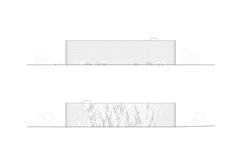Doppelspiel – Die Hochgarage läuft an der Grenze des Sonnwendviertels Ost entlang, deren beiden Seiten unterschiedlicher nicht sein könnten. Die Nordost-Fassade orientiert sich zur wichtigsten österreichischen Bahnverbindung in Ost-West-Richtung. Diese Seite wird täglich von tausenden Zugpassagieren aus einer Distanz von einhundert Metern wahrgenommen. Die andere Fassadenseite ist dem Stadtelefant und seinen Nachbarshäusern zugewandt, tatsächlich beträgt die Distanz nur wenige Meter, zu den Wohnungen nebenan vergrößert sich der Abstand.