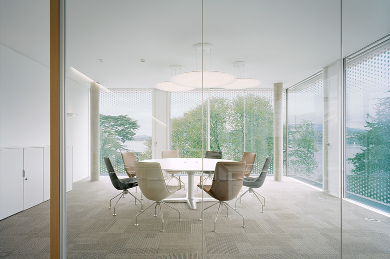 Idyllisch in einem Park am Genfer See gelegen schwebt das Erweiterungsgebäude der WTO in gläserner Klarheit über einem erdgebundenen, zurückspringenden Sockel. Der riegelförmige Bau ergänzt die Bestandsgebäude der Organisation mit gebührendem Abstand. Eine gläserne Fußgängerbrücke, die direkt in die zentrale Lobby führt bildet dabei die Verbindung. Geprägt ist das lichtdurchflutete, durchlässige Gebäude durch die Transparenz der Gebäudehülle und seine stringente Struktur: Während in den Obergeschossen Büros und Verwaltung untergebracht sind, befindet sich im Sockel neben der Lobby ein Restaurant mit Terrasse. Dank seines ausgeklügelten Energie- und Lüftungskonzepts unterschreitet das Gebäude die gültigen »Minergie-P« Energie-Standards. Teil davon ist auch die Ausstattung des Baus mit Leuchten von Nimbus. Neben den energetischen Aspekten überzeugte wittfoht architekten aber auch ihre Ästhetik und Lichtqualität: „Die Nimbus LED-Leuchten tragen zu der ganz besonderen Raumatmosphäre im WTO Erweiterungsbau wesentlich bei und werden von den Mitarbeitern sehr positiv aufgenommen.“ betonen sie.