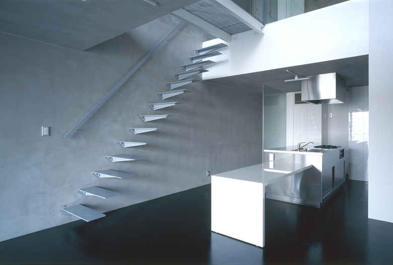 分節されたファサードが示すように、間取りも内装もすべて異なる13の住戸。松戸駅前という高い利便性から、多様な利用形態を想定した。各階で水回りの位置も異なるため、逆梁工法を採用し、床下の梁ふところで設備配管を行っている。
