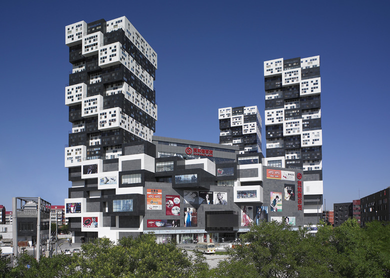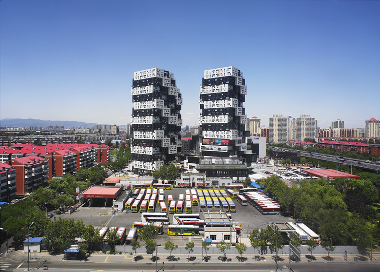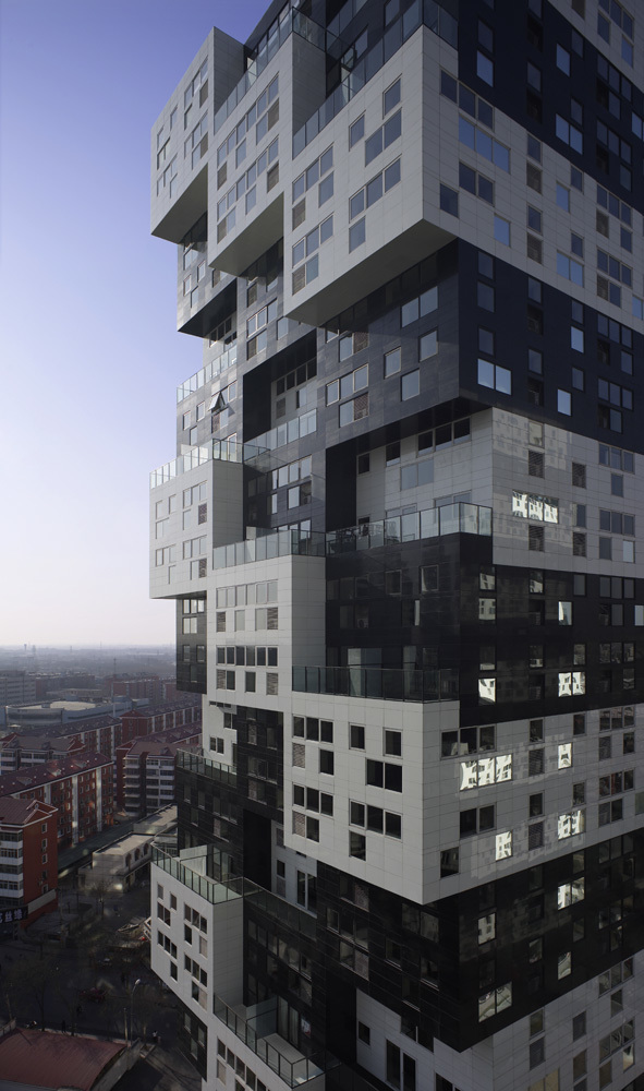 Accumulation Incline / Shift – An integrated project with 4 residences as well as a commercial building. The whole project is rotated 45 degrees from the north south axis. The design guarantees not only moving lines that flow from the 4 angles to the central business area, but also provides optimum sunshine for every building. The Residence building is 80m high. The setback areas are used for terraces. The upper building massing varies by stacking small scale volumes together. Setbacks are also used for a restaurant terrace on the 6th story of the commercial building to enhance the dynamics of the facade.