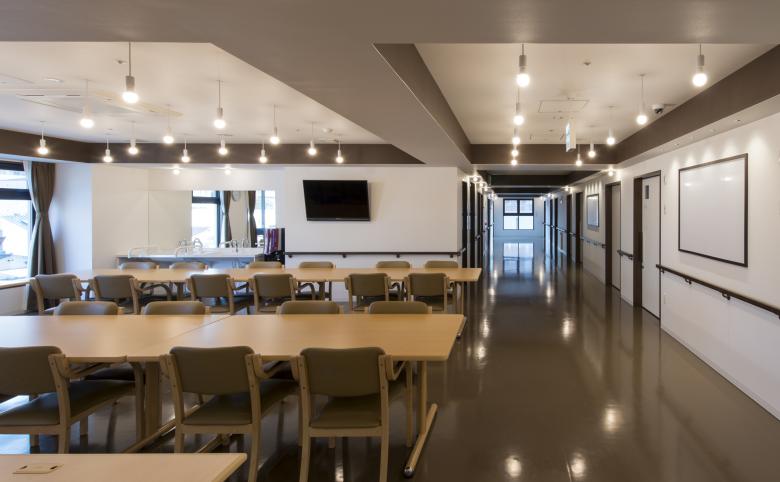 Located just a 6-minute walk from Kurume Station, this assisted living facility stands in the heart of the city. While assisted living facilities are often built in suburban areas to reduce land costs and provide quieter surroundings, the urban location of this facility offers superior access to public transportation and medical services. This convenient location also facilitates family visits, emphasizing a design that nurtures connection with the local community.