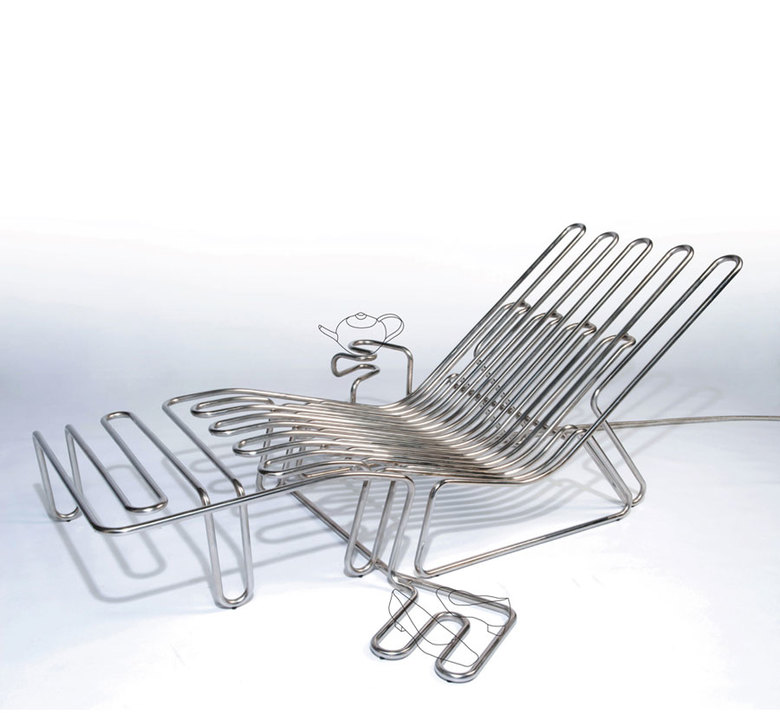 Cosy Chair ersetzt den üblichen mono-funktionalen Heizkörper durch ein auf den Gebrauch zugeschnittenes Mobiliar. Der Lounger heizt nicht das abstrakte Volumen eines Raums, sondern führt die Wärme dorthin, wo sie gebraucht wird – etwa um ein Buch zu lesen – und reduziert so den Energieverbrauch. Der Cosy Chair stellt ein differenziertes Temperaturfeld von Tee-Stövchen, zu Schuh- und Fusswärmer bis zur Rückenheizung bereit. Er ist aus rostfreien Stahlrohr hergestellt und wird an das normale Heizsystem eines Gebäudes angeschlossen.