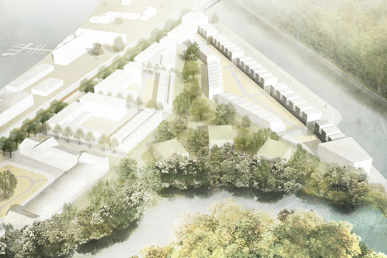 Städtebau und Freiraum – Der Entwurf verfolgt das Ziel, die Qualitäten dieser einzigartigen Natur- und Kulturlandschaft identitätsstiftend für das zukünftige Quartier herauszuarbeiten. Dazu werden drei Raumtypen mit spezifischen „Adressen“ formuliert: