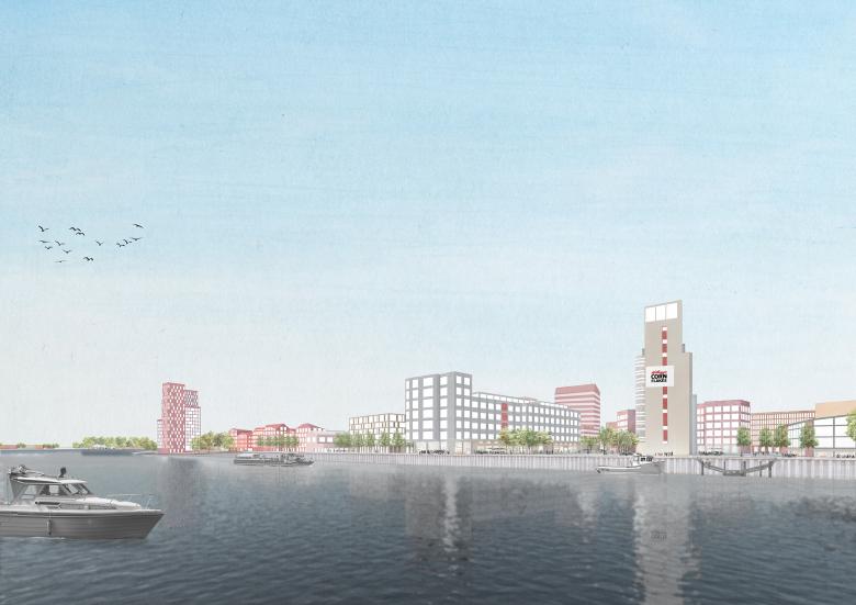 Der bauliche Bestand wird so weit wie möglich erhalten und umgenutzt. Neben den gewerblich genutzten Schuppen am Hafenbecken sind das Kellogg-Silo, die Reishalle und das Produktionsgebäude 25 charakterprägende Protagonisten und Ankerpunkte für neue öffentlichkeitswirksame Nutzungen, für Produktion und Wohnen. Die Interpretation des Vorgefundenen und die dabei notwendige Improvisation eröffnet Möglichkeitsräume für neue Wohnformen, Kreative und soziale Initiativen. Im Unterschied zur geplanten Stadt ohne Passungenauigkeiten kann so eine Vielfalt unvorhergesehener Nutzungen und Akteure zusammengebracht werden.