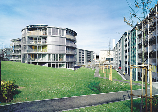 Der Regina-Kägi-Hof markiert die südwestliche Ecke des 61 Hektar grossen Entwicklungsgebiets Zentrum Zürich Nord. Auf Basis eines 1992 veranstalteten internationalen Ideenwettbewerbs, aus dem das Zürcher Büro Ruoss / Siress / Schrader als Sieger hervorging, wird das einst industriell genutzte, im Besitz der ABB, aber auch weiterer Firmen sowie der Stadt und des Kantons befindliche Terrain nördlich des Bahnhofs Oerlikon einer neuen Nutzung zugeführt. Auf dem früheren Industriegelände sollen innerhalb der nächsten Jahrzehnte Wohnungen für 5000 Einwohner sowie 12000 Arbeitsplätze entstehen. In architektonischer Hinsicht wurde eine Orientierung an der Volumetrie der früheren Hallenbauten festgeschrieben; eine ebenfalls denkbare Hochhausbebauung stiess damit auf Ablehnung. Im Auftrag der Allgemeinen Baugenossenschaft Zürich entstand auf Basis eines eingeladenen Wettbewerbes 1997 der Regina-Kägi-Hof.