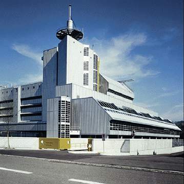 Nationale und internationale Telefonzentrale mit 4-geschossigem Wohlfahrtsgebäuden der Schweiz und erster selbsttragender Sandwichfassadenkonstruktion in Tiefziehtechnik.