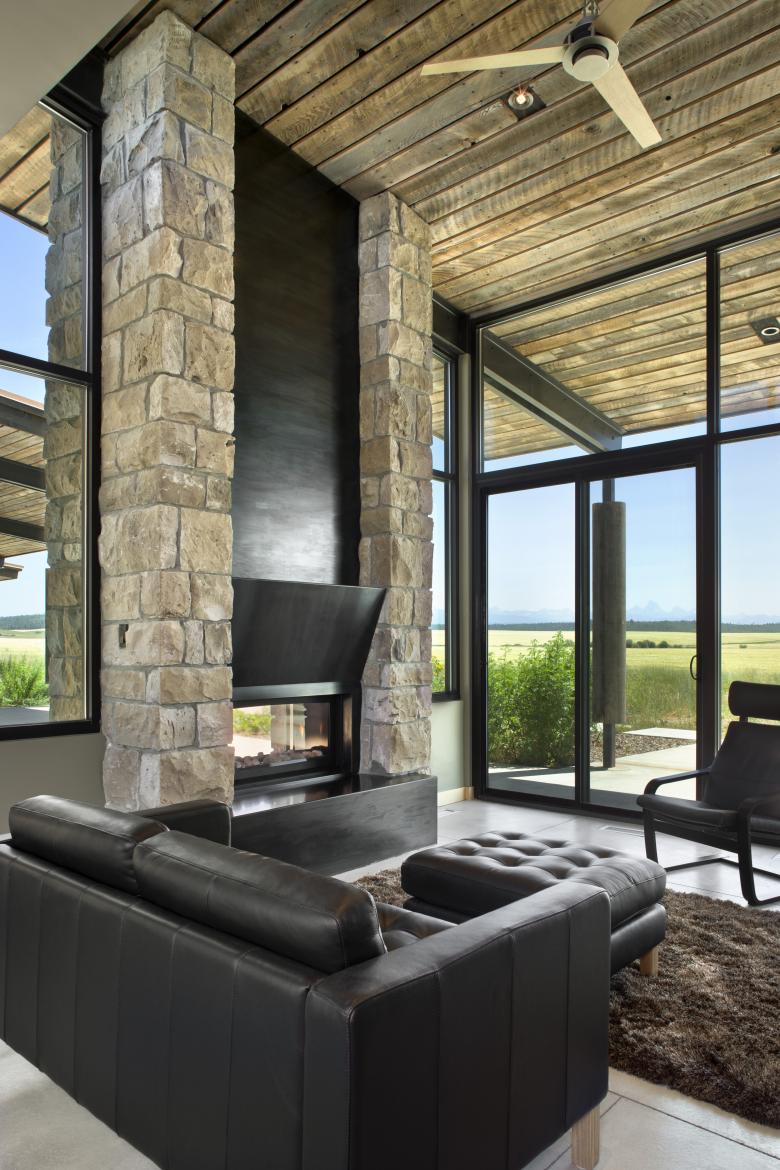 The building’s passive solar design is coupled with other green energy features such as the ground source heat pump that carries water naturally kept at the earth’s temperature, requiring minimal heating and cooling for interior use. Sustainable building materials such as reclaimed douglas fir used for soffits and ceilings as well as reclaimed stone for architectural detailing further enforce the client’s desire to reduce the environmental impact of the building footprint.
