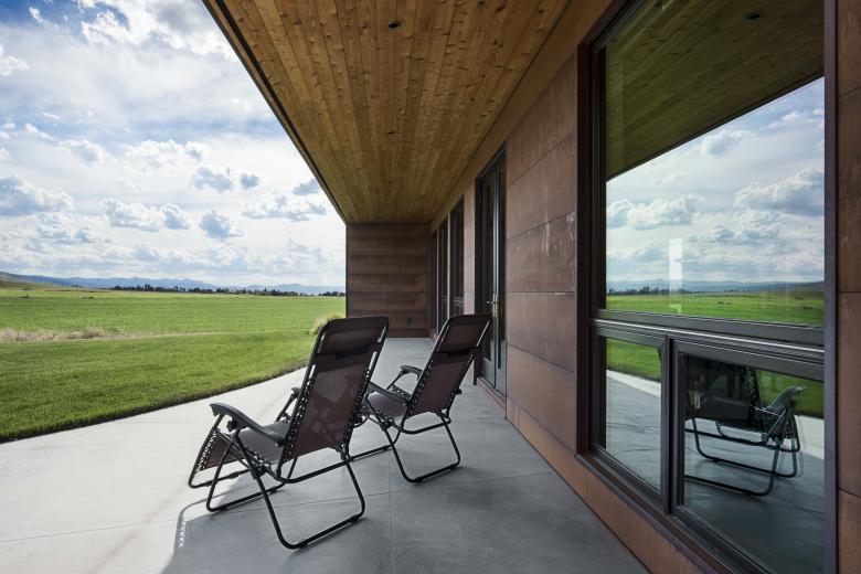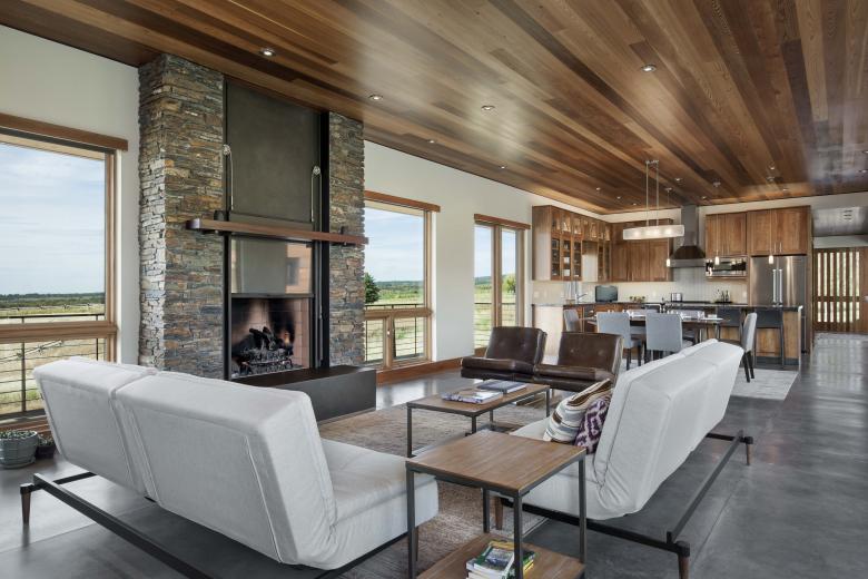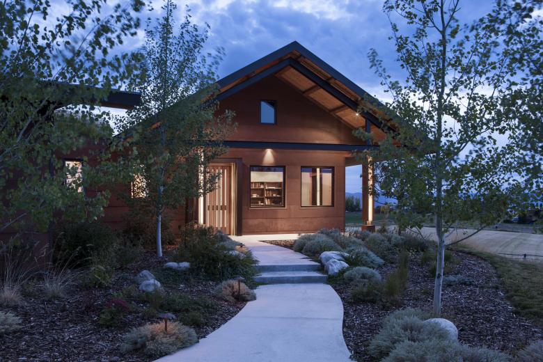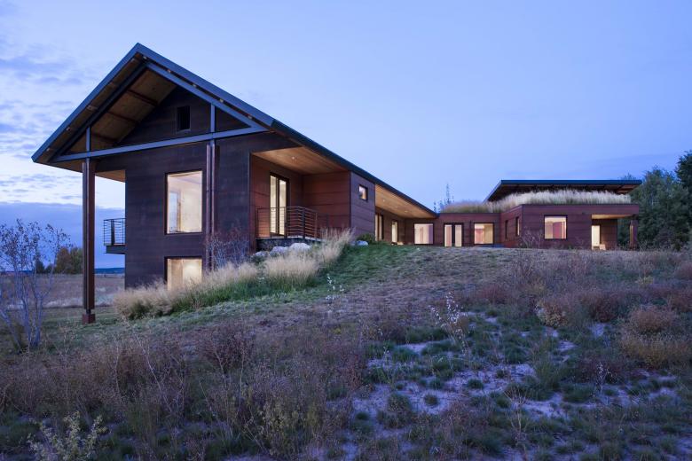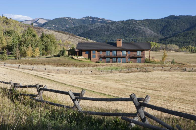 Positioned along a knoll of rolling farmland at the base of the Tetons, this one room wide residence allows abundant visual connections and transparency of both light and viewscapes in multiple directions. It seamlessly integrates with its site allowing the daylight basement to emerge from the existing slope. Situated to preserve much of the existing farming operations on the site, the project unreservedly protects the historical charm of the lot.