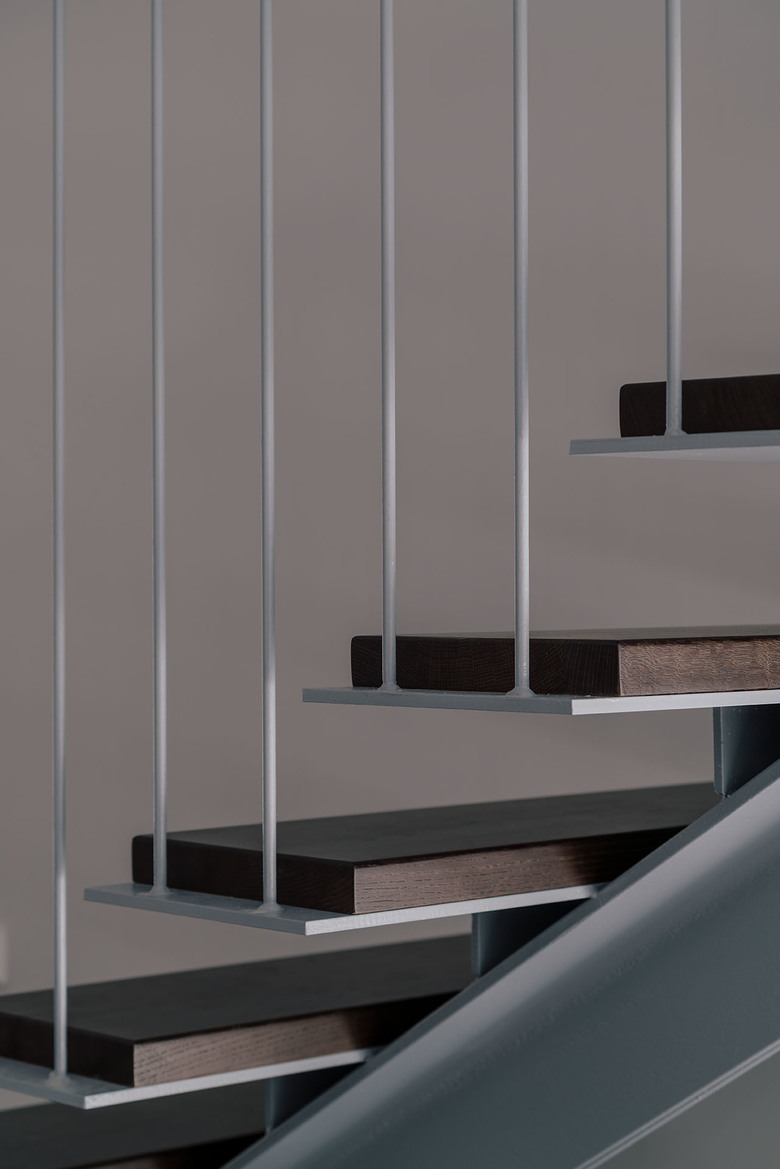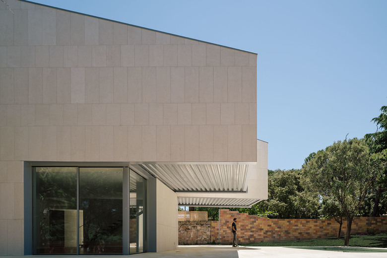 Para aportar solidez y contundencia, en contraposición con los pronunciados vuelos, todos los volúmenes se acaban en piedra caliza.