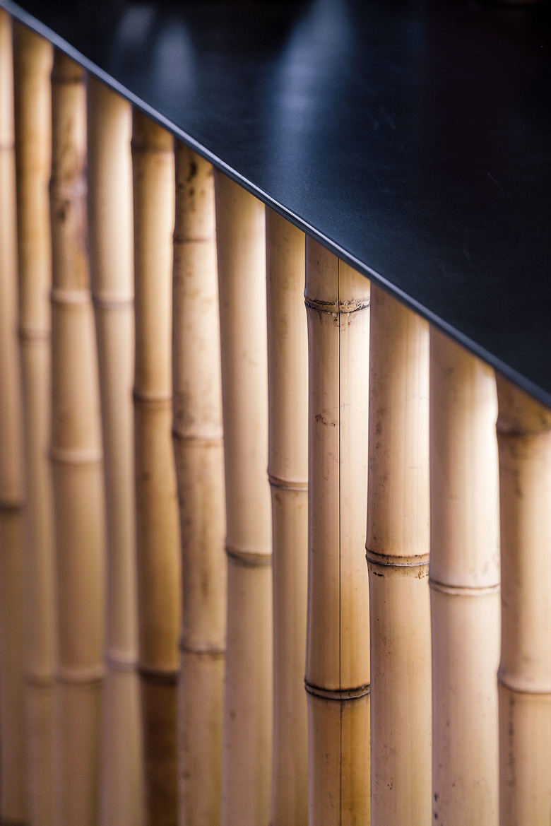 Debido a la complejidad del programa y a la pequeña superficie el local, el concepto global nace de generar mediante una geométrica orgánica, una organización de espacios que sea capaz de servir a todas las necesidades. Por ello, nos servimos de un elemento lineal vertical que es el bambú, y lo repetimos a lo largo de esta geometría enfatizando las zonas de cambio.